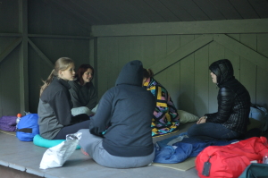 One of our beginning of the year traditions occurs the first weekend at school when the boys and girls split up to go camping! We have found there is nothing like snuggling together in a lean-to and eating s'mores by a fire to bond people together. This year, the girls went to Branbury State Park, located on the eastern shore of Lake Dunmore at the base of Mt. Moosalamoo. After a cold Friday night by the fire, the girls were glad to explore nearby Middlebury, go thrift store shopping, and get fries and shakes and the A&W. The boys stayed at Ricker Pond State Park, in Groton, Vermont. Although the park is located on the shore of the pond, none of the campers was eager to dive in! On Saturday morning, per boys floor tradition, they explored the wonders of the Tunbridge World's Fair, where they bought some kitschy t-shirts.